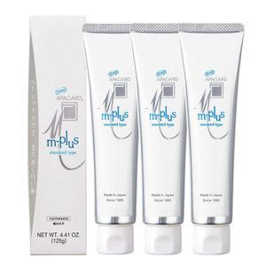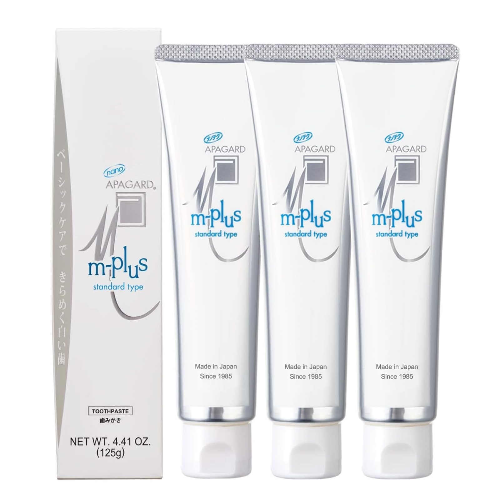 APAGARD® M-Plus, Sangi's Nano-Hydroxyapatite Toothpaste for Naturally Whiter Teeth, No Fluoride, for Family use, 125g / 4.4 oz, Mild Mint Flavor, Pack of 3