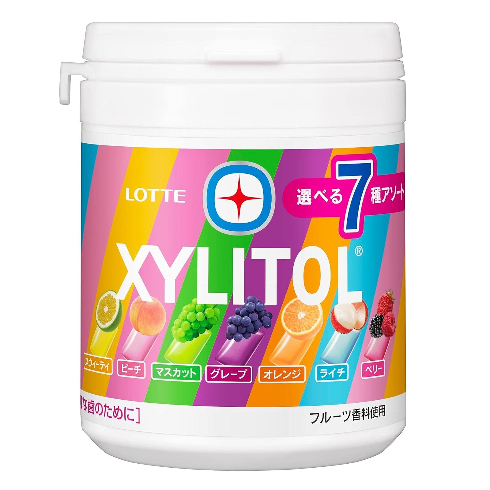 This assorted bottle of xylitol comes in seven refreshing fruit scents. You can enjoy your favorite scent to suit your mood that day! The refreshing flavor is subdued, so even those who don't like mint can chew it with peace of mind.