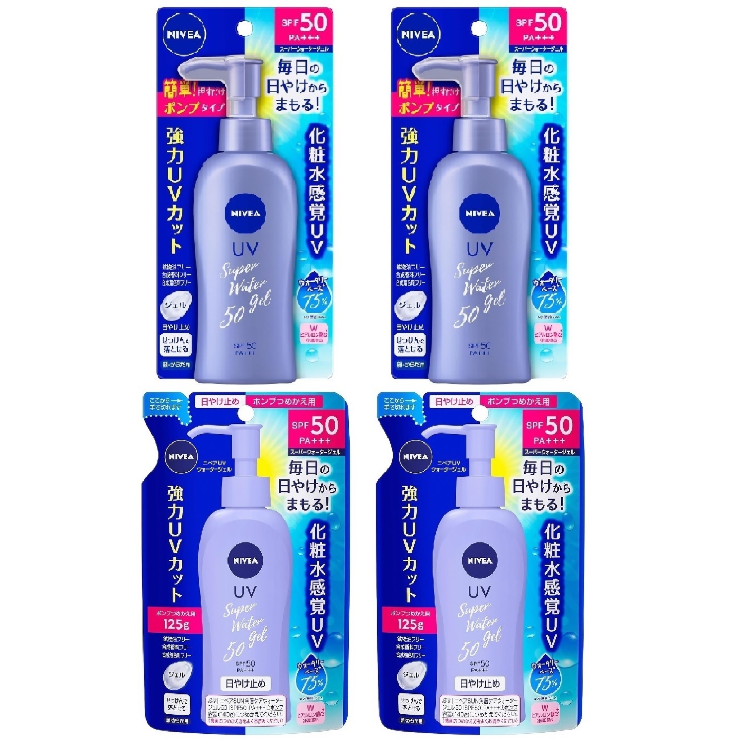 NIVEA SUN SPF 50/PA+++ Super Water Gel Sunscreen 4.73floz(140g) Pump×2+ 4.22floz(125g) Refill Pack×2