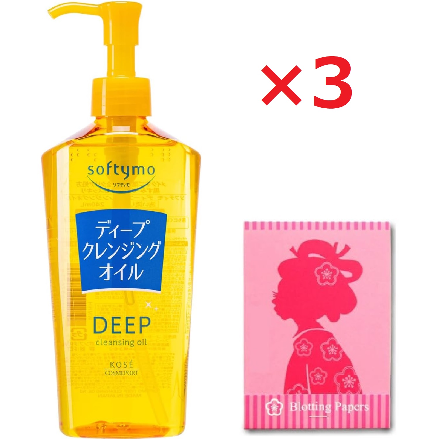 Kose Softymo Deep Cleansing Oil Makeup Remover 7.77floz(230ml) Including Oil Blotting Paper Set Of 3