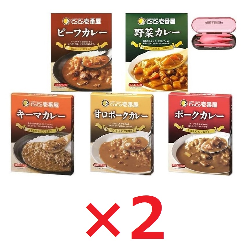 Coco Ichibanya Curry Instant Japanese Curry Pack Of 10(pork/beef/sweet pork/vegetables/keema) Including Original Spoon