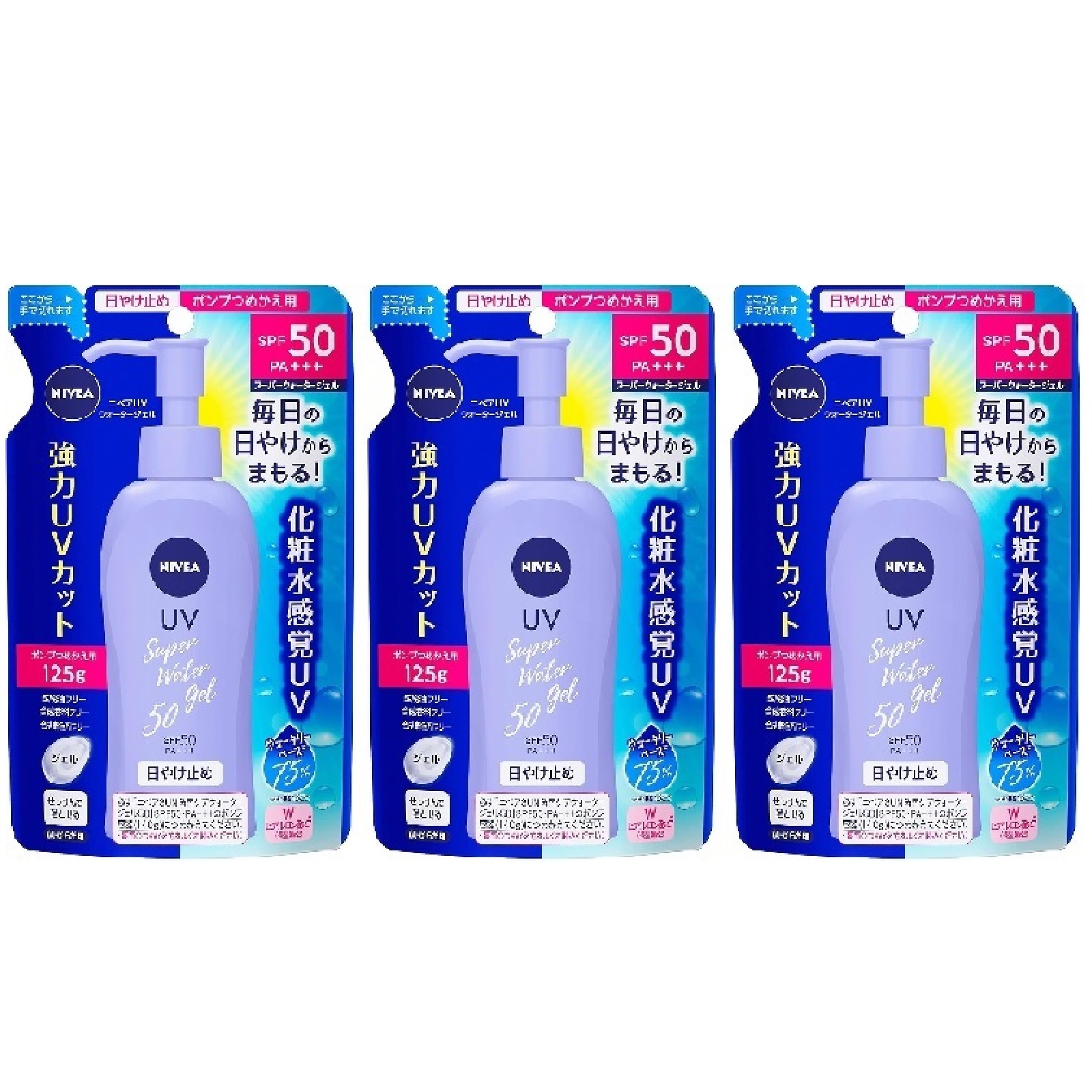 Nivea Sunscreen SPF 50/PA+++ Super Water Gel 4.22floz(125g) Refill Set Of 3